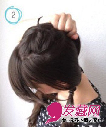 小编点评:将留出来的头发先用皮筋固定,然后开始从头顶编织辫子。