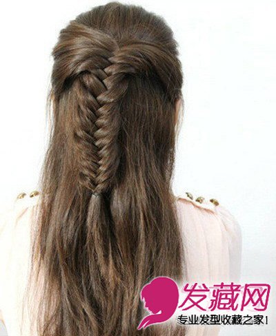 公主系鱼骨辫半扎发教程 展现甜美风(7)