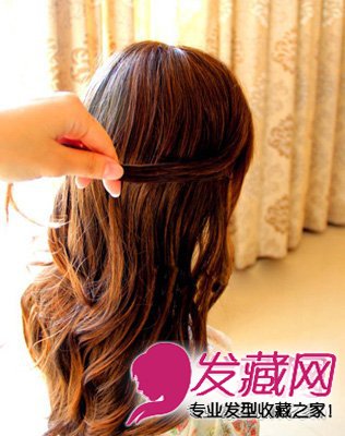 1:第一步呢先在头发两端各取一束头发,大概在耳朵上面一点位置,如图