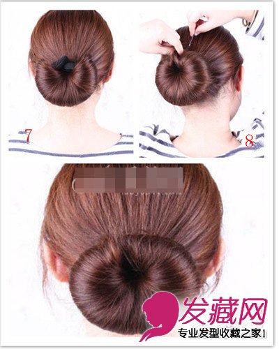 第八步:扇形头发的两端拉拢,用黑色夹固定。
