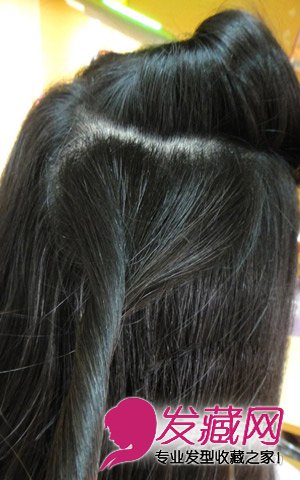 第三步:在刚刚取头发的下方取少量头发绕起一个小花苞。