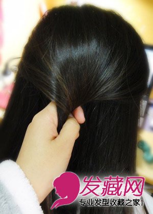 第五步:将事先往上卷起的头发放下来,记得是按照图示的方向扭进去的哦。