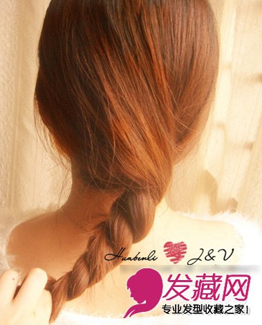 扭的时候要紧一些,扭好后不要松手。将发尾朝左侧旋转,顺时针方向