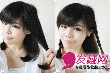 3、4右边抓起一小束头发绑出辫子