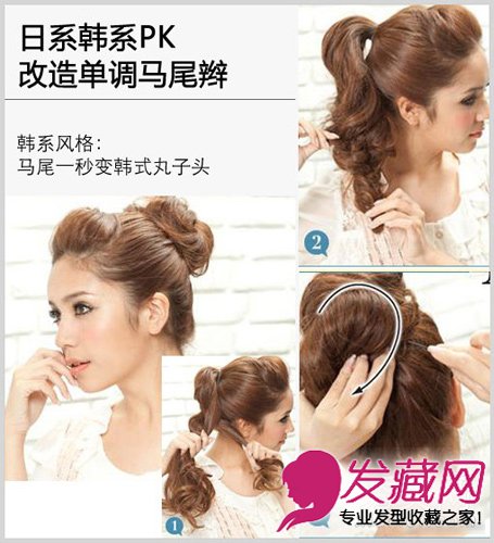 韩系风格:马尾一秒变韩式丸子头
