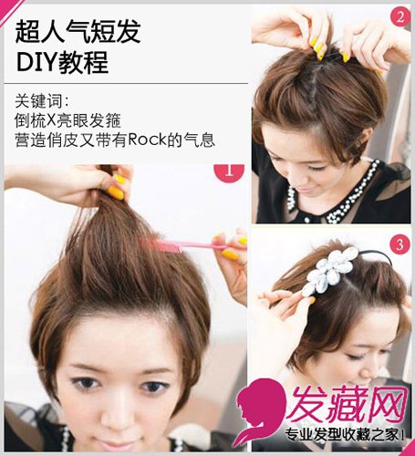 根据自己喜好选取充满少女系的亮色或者带有bling bling效果的发箍置于头顶,压在固定的发束之上即可。