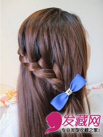 然后在发辫皮筋处搭配一只小巧的蝴蝶结发饰,很美很仙儿吧