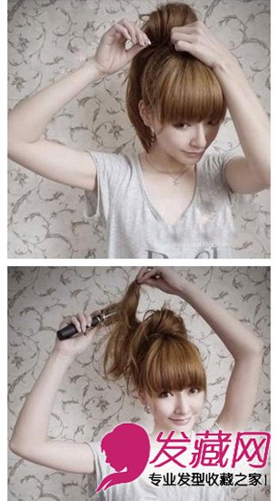 女生diy发型图解韩式瘦脸丸子头扎发(4)