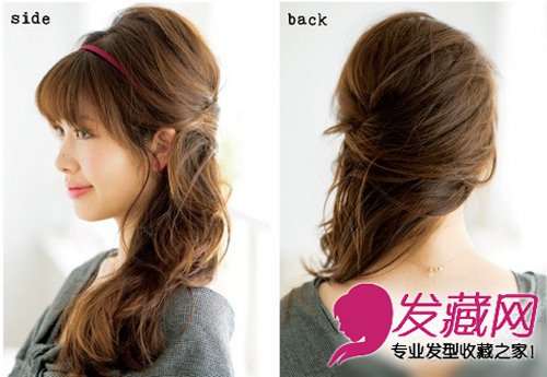 完成图:从侧面看,头顶营造出蓬松感打造完美头型,从背面看,露出性感的脖子。