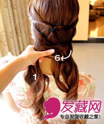11:在右边头发标记为2部分中,在最右端取一片头发,标记为6。把标记6头发与标记2的头发合二为一,如图