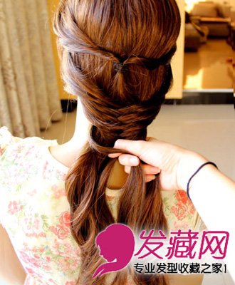14:编发的部分已经完成啦,如图双手放在图中箭头的位置向外把头发拉松,这样做的目的就是为了头发看上去不要太死板了。