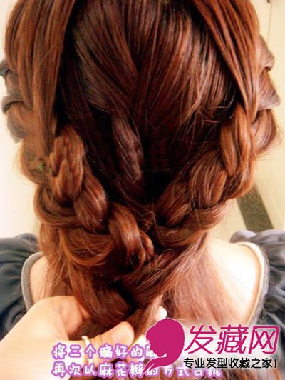 将三个编好的麻花辫再次以麻花辫的方式合拢。