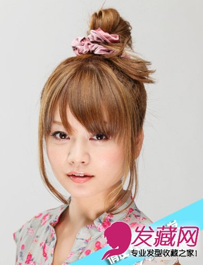 剪裁精致的刘海层次分明,沿着脸颊优雅而下,修饰出一张精致白皙的脸蛋;长长的秀发被盘成一个精巧的丸子头,配上一个花饰,真是百分百减龄。无论从哪个角度看过来都是如此完美动人,翘起的丸子头更多了股小女生的俏皮可爱,绝对是淑女们扮嫩的必备武器。那我们就一起动手改造自己的头发吧。