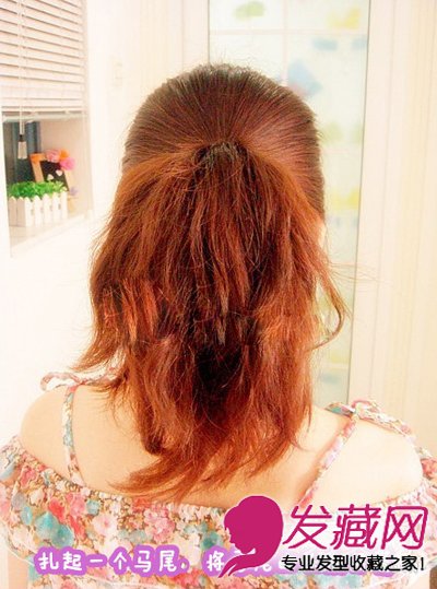 扎起一个马尾,将马尾的头发打蓬