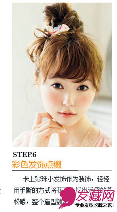 步骤6: 最后用彩色的发饰点缀好。这款发型就完成啦。