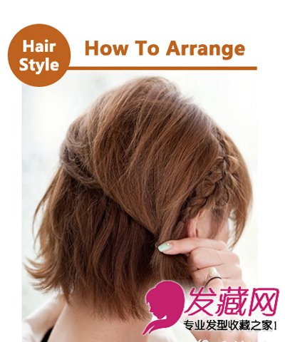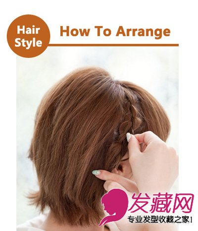 步骤1:留出刘海,再取出一束头发,分成均等三束,开始编麻花辫,期间需要不断加入下方的头发。