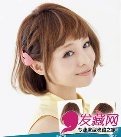 中短的波波头造型还有什么可造之处?,不妨将两侧蓬起的发丝别在耳后,看上更利落自然。