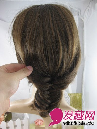 编到发梢处 用橡皮筋固定 调整拉松头发