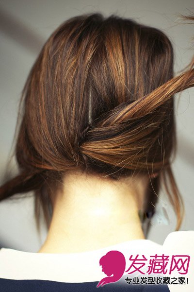 然后将两束头发在脑后稍低的位置打两至三个结 (依头发长度和想要营造出的视觉效果作调整);