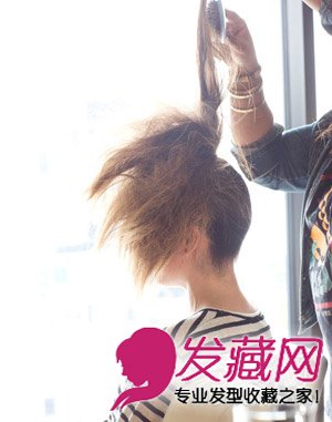 在制作发卷之前,用梳子倒梳马尾将头发打毛,从而制作蓬松感。
