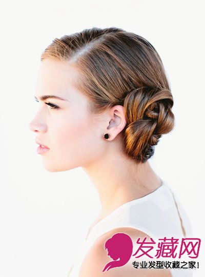长长的头发被悉数束起,于耳后盘成一个扭转的发髻,复古而美好。