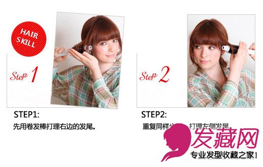 STEP1:先用卷发棒打理右侧的发尾,让垂下来的发丝更显妩媚女人味。