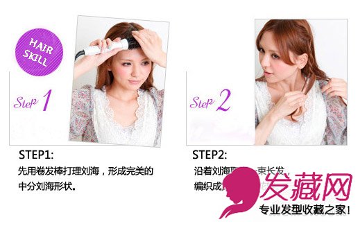 STEP1:运用卷发棒打理刘海,将刘海烫成完美的中分刘海。