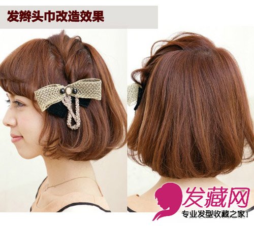 清爽短发编发 白色蕾丝质感的蝴蝶结更加纯情(9)