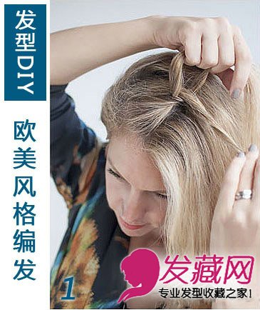 造型前用定型产品打理一下头发会令编发更顺手。首先将头发进行大侧分,在