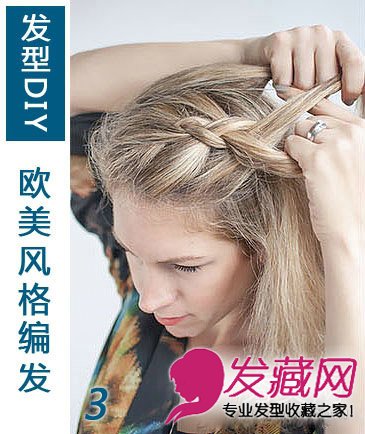 经过两三步编织之后,刘海全部被编入麻花辫造型中。