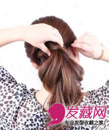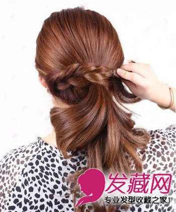 把麻花辫围绕马尾一圈,最好能把皮筋遮盖好。