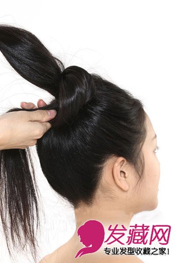 ¡¡¡¡Step4£º½«ÌôÆðµÄ·¢ÈÆÔÚÂíβÉÏ£¬ÊÖ¾¢¶ùÒª½ô£¬²ÅÄܼõÉÙËé·¢ºÍËÉÉ¢µÄ¸ÉÈÅ£¬ÈƺúóÒÔ·¢¿¨¹Ì¶¨×¡¡£