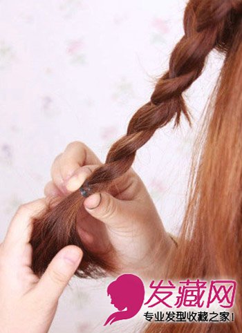 step 9:扭转到最后,用黑色橡皮筋固定发尾。