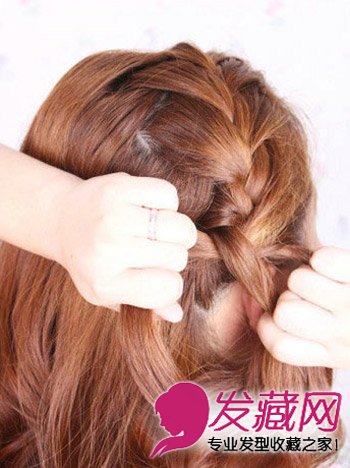 step 6:编到耳朵处开始转弯,准备向另一侧编发。