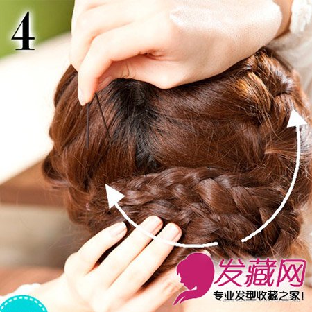 step4:再将发辫于脑后重合成发髻状,分别用发夹固定,这款韩式知性风编发就完成了。