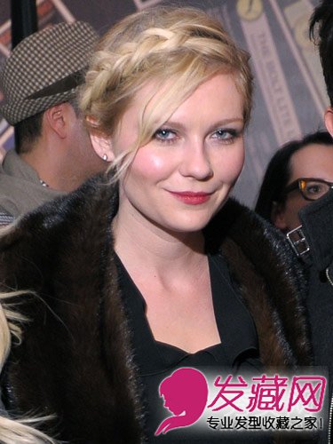 上梳起了瑞士典型的辫发。这款前卫的造型,与她暗红色的唇膏相得益彰,搭配完美。