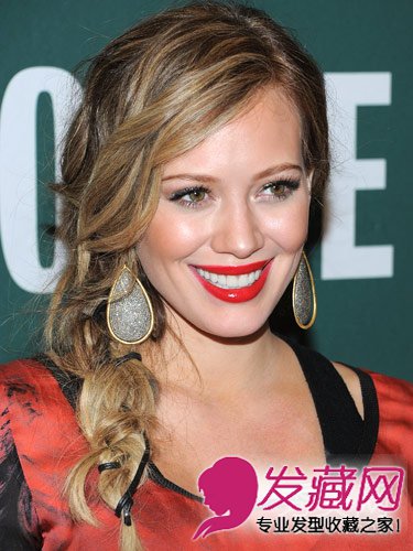 谁说的杂乱不整就不能成为时尚呢?Hilary用皮革的细绳辫起了她的头发,并把辫子稍微拉乱塑造出一种朴实的时尚感。