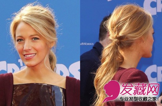 活泼的马尾辩儿,就是要低一些、凌乱一些,可以成功的为性感造型加分。如果头发有些自然卷,用含矿物质的喷雾可以起到增强纹理的效果;如果头发本身很垂顺,可以先用卷发棒增加一些卷度和蓬松感,之后就可以把要梳起来的头发和其余的分开,梳起马尾的同时,要依靠头发的弹性来与颈部后侧的皮肤保持间距, 再把其余的头发固定在马尾周围,确保它们能服帖。最后一步就是理出几缕头发在面颊的两侧,这样增加了整个发型的层次感,看上去更加俏皮、自然。