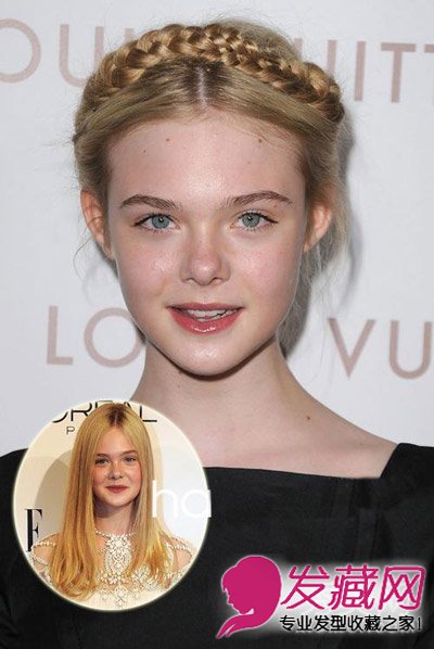 一向以柔顺直发造型出镜,给人小仙女、小萝莉印象的艾丽·范宁 (Elle Fanning) ,12月7日在电影《Somewhere》好莱坞首映式上,也换上了超流行 的民俗风编发,搭配黑色小礼服,越发显得清新动人。精致的麻花辫以“头巾 ”的方式盘在头顶,更加凸显出艾丽·范宁 (Elle Fanning) 精灵般的面部轮廓。