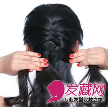 继续用普通三股辫手法编发,直至发尾,并用发圈固定。