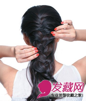 用手把三股辫部分的头发稍稍拉松,让发辫呈现出片状(发带状)。这款