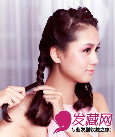 Tips:如果在头部后面的发辫编不好,也可以先不按照从右向左的方向,待编好后再挪到头的左侧。