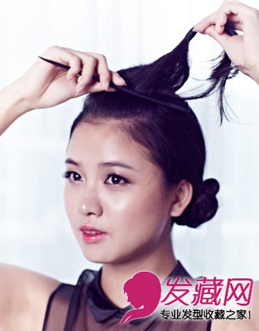 将头顶预留的头发完全散开,并用尖头梳将头发倒梳、打毛。