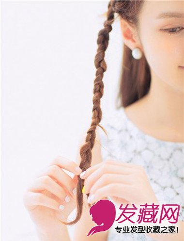 将左侧约两厘米左右的麻花辫,同上盘起,编发的时候注意松散度,不宜过紧和过松