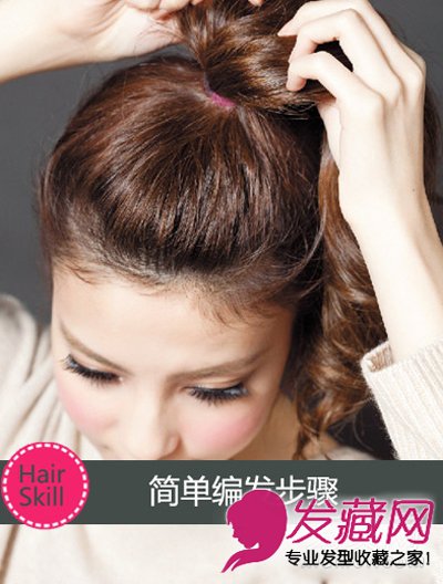 step1:先绑一个高位马尾,将头顶的发丝拉扯蓬松。