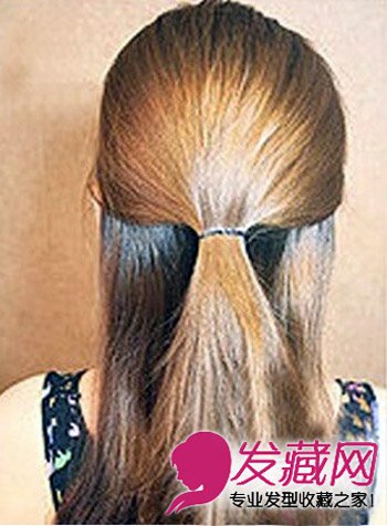 步骤一:首先将两侧的头发用小橡皮筋绑在脑后,发量可以多一些。预留的头发最好不要过多。