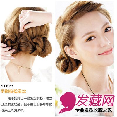 step3、很自然的用手抓送发髻看起来有型好看。