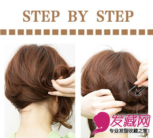 Step1:将脑后的短发轻轻别至一旁,然后逆时针扭转。