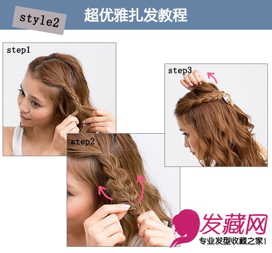 step2:再将辫子轻轻拉扯,打造出蓬松造型。另外一侧重复同样步骤。