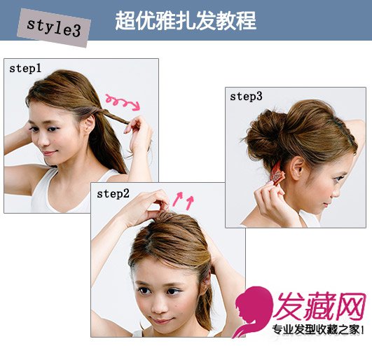 step3:再将发尾缠绕成花苞,用发夹固定,这款扎发也完成啦。